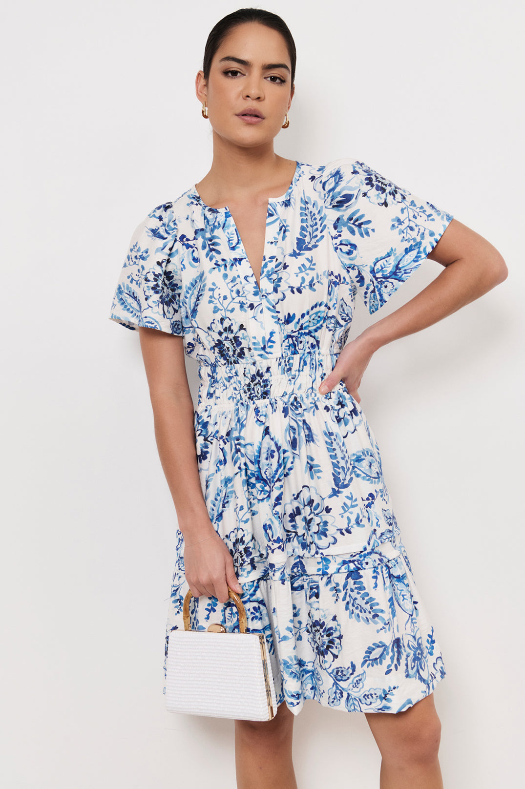 Bamboo handle weave small bag white