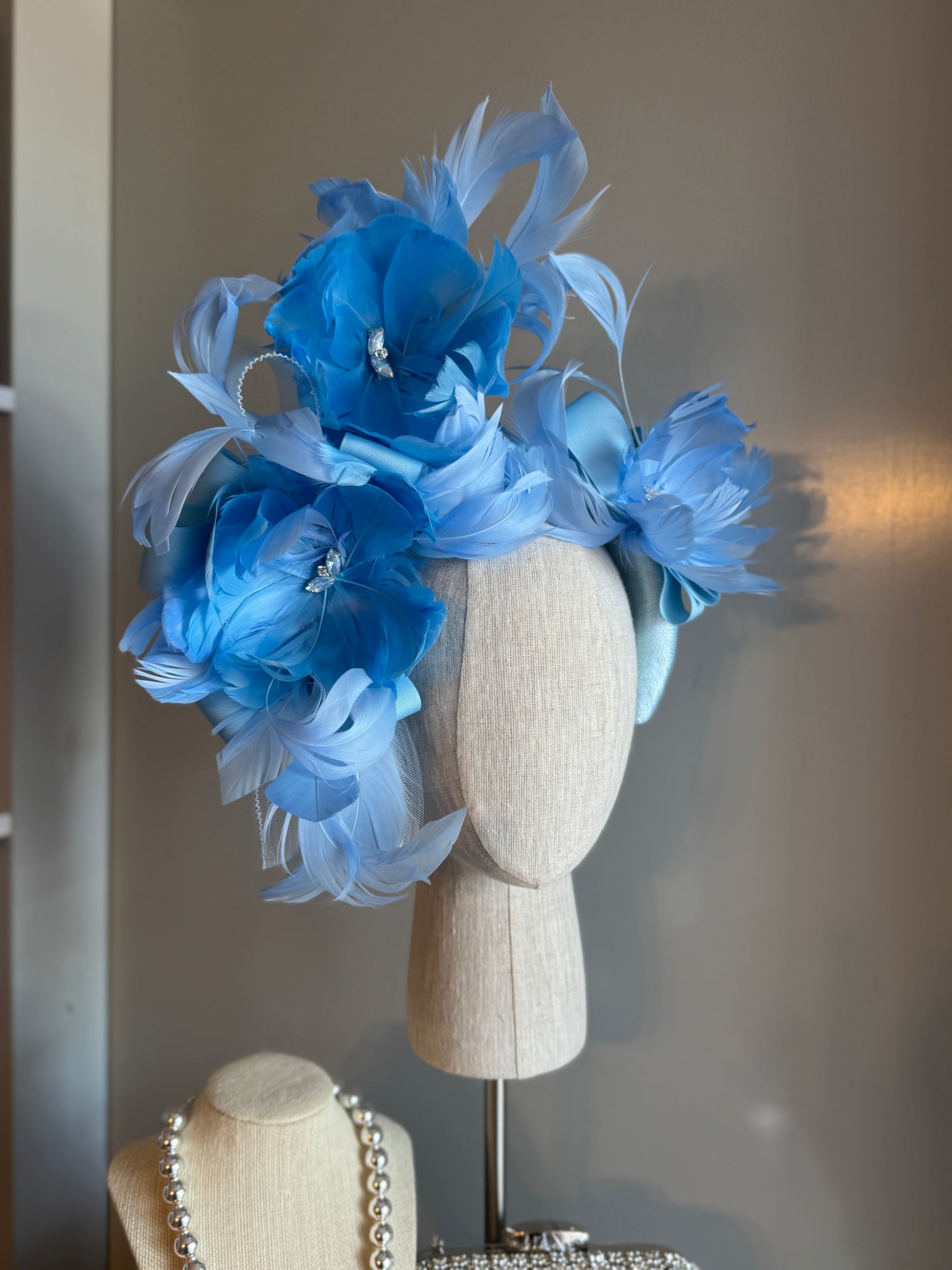“Leah” blue floral sinamay padded statement headband