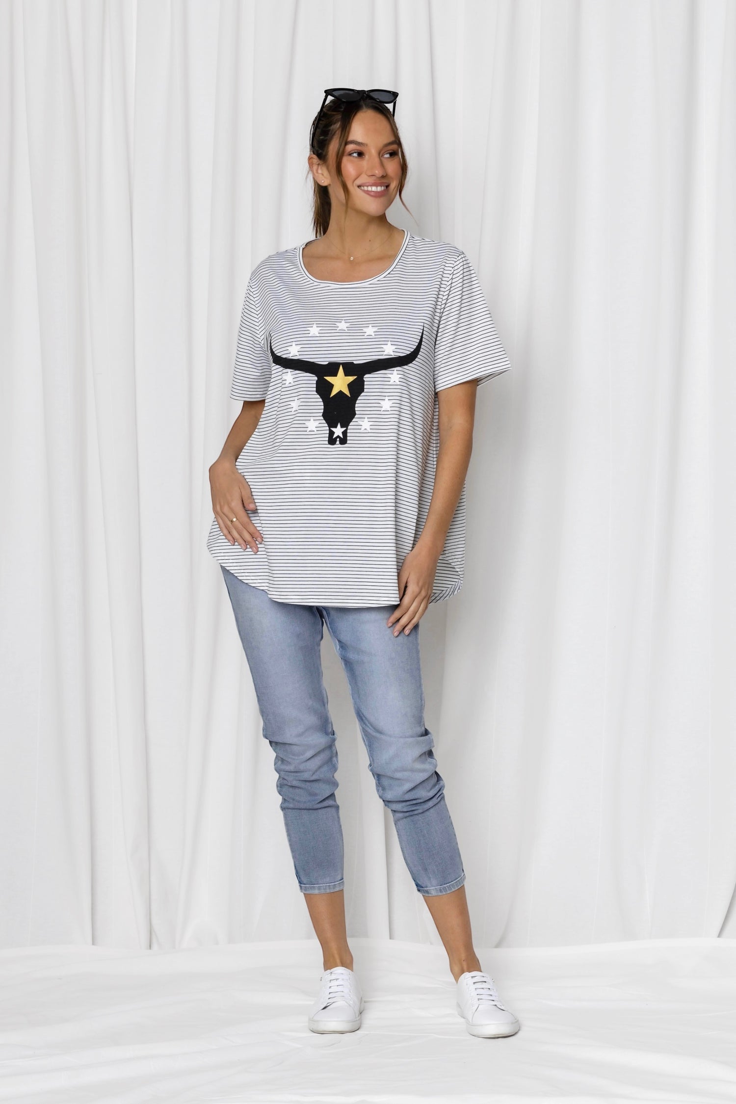 Lily love the Label white/Black striped bull T.Shirt size XS/S (8/10)